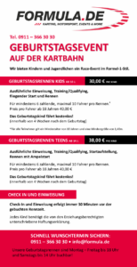 Torte, Geburtstagslieder und Topfschlagen sind nicht mehr cool? Wie wäre es denn stattdessen mit Pizza, Motorensound und Pokale hochrecken? Feiern Sie einen unvergesslichen Kindergeburtstag auf der Formula-Kartbahn! Wir bieten unseren kleinen Gästen…